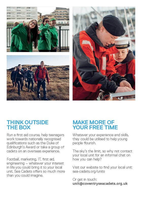 At Coventry Sea Cadets we aim to give young people from 10-18 an experience that will help them grow into the person they want to be in a safe and friendly environment. Through various activities and ...